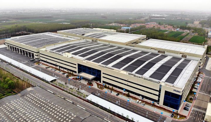 2025年4月17日拍攝的位于山東青島膠州市的海爾AI賦能多聯(lián)機(jī)互聯(lián)工廠(無(wú)人機(jī)照片)。新華社記者 李紫恒 攝